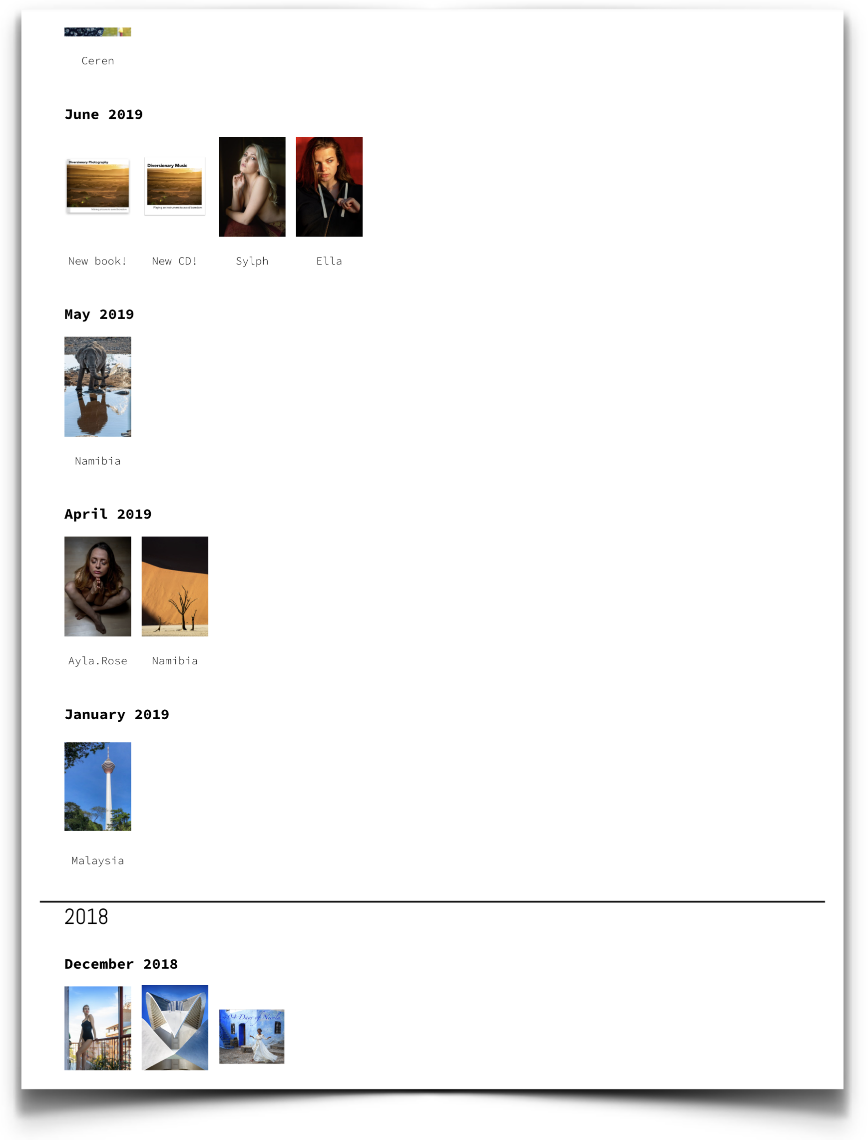 > My art work > My audio recordings > My books > My pictures of people > My pictures of places > My pictures of myself > My trips > My timeline